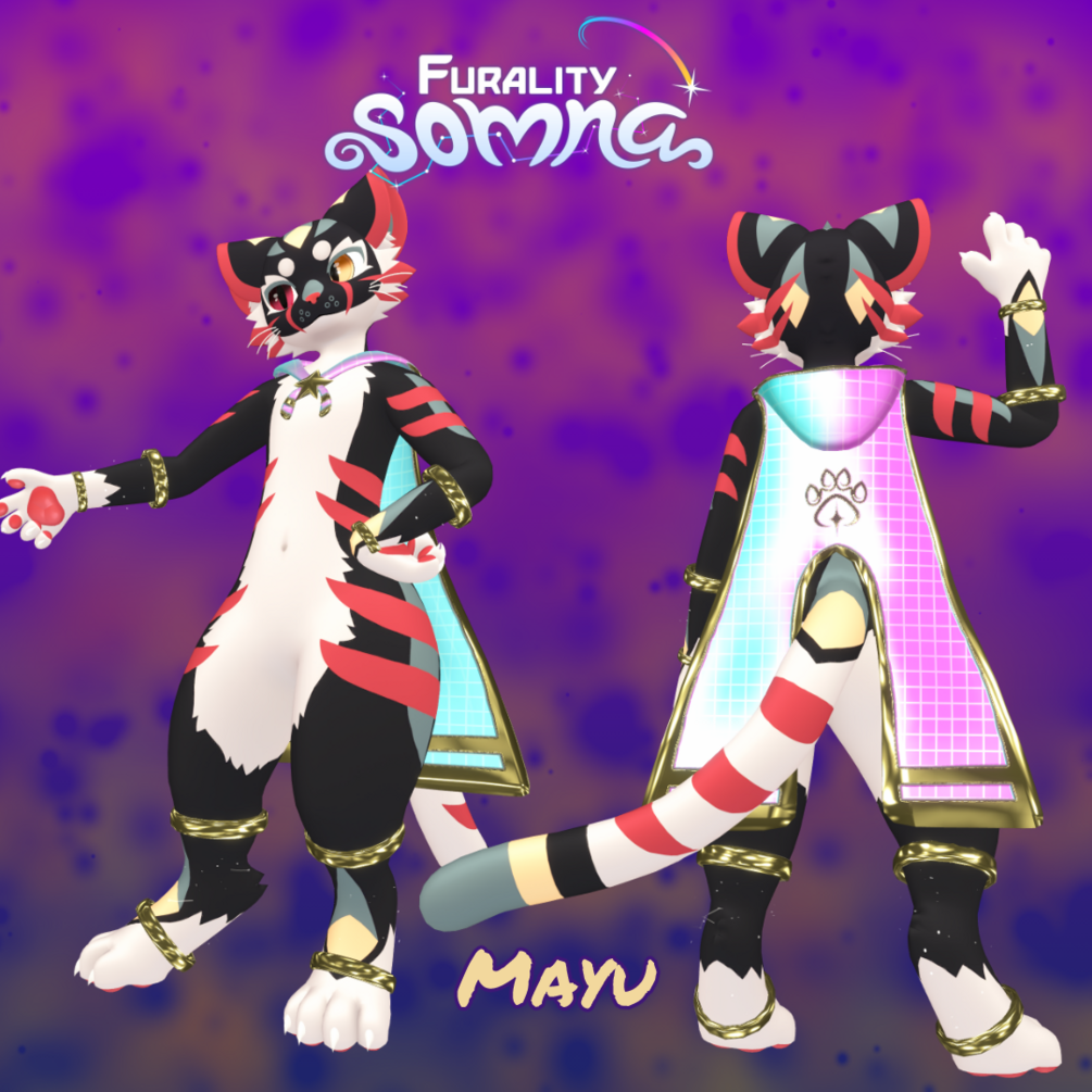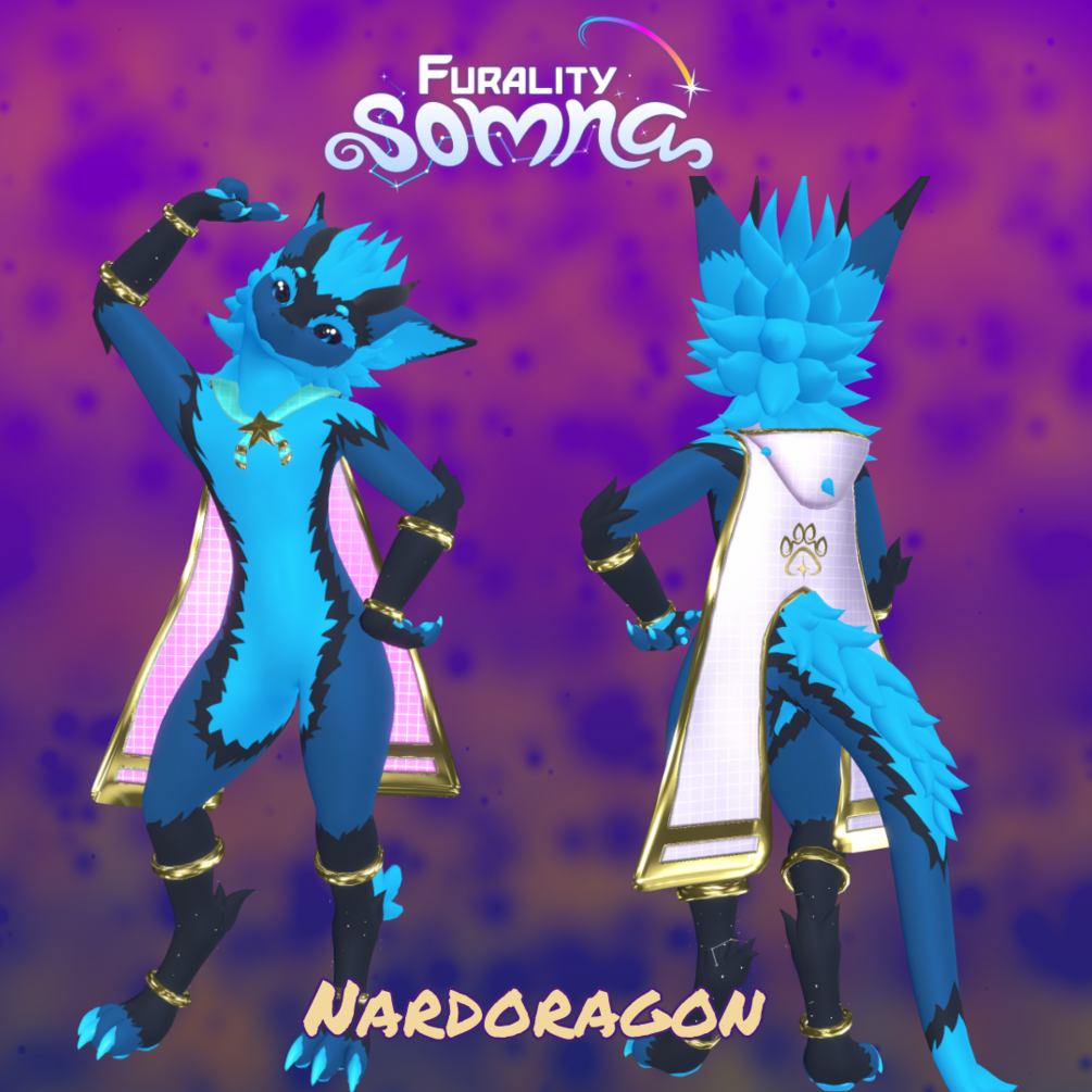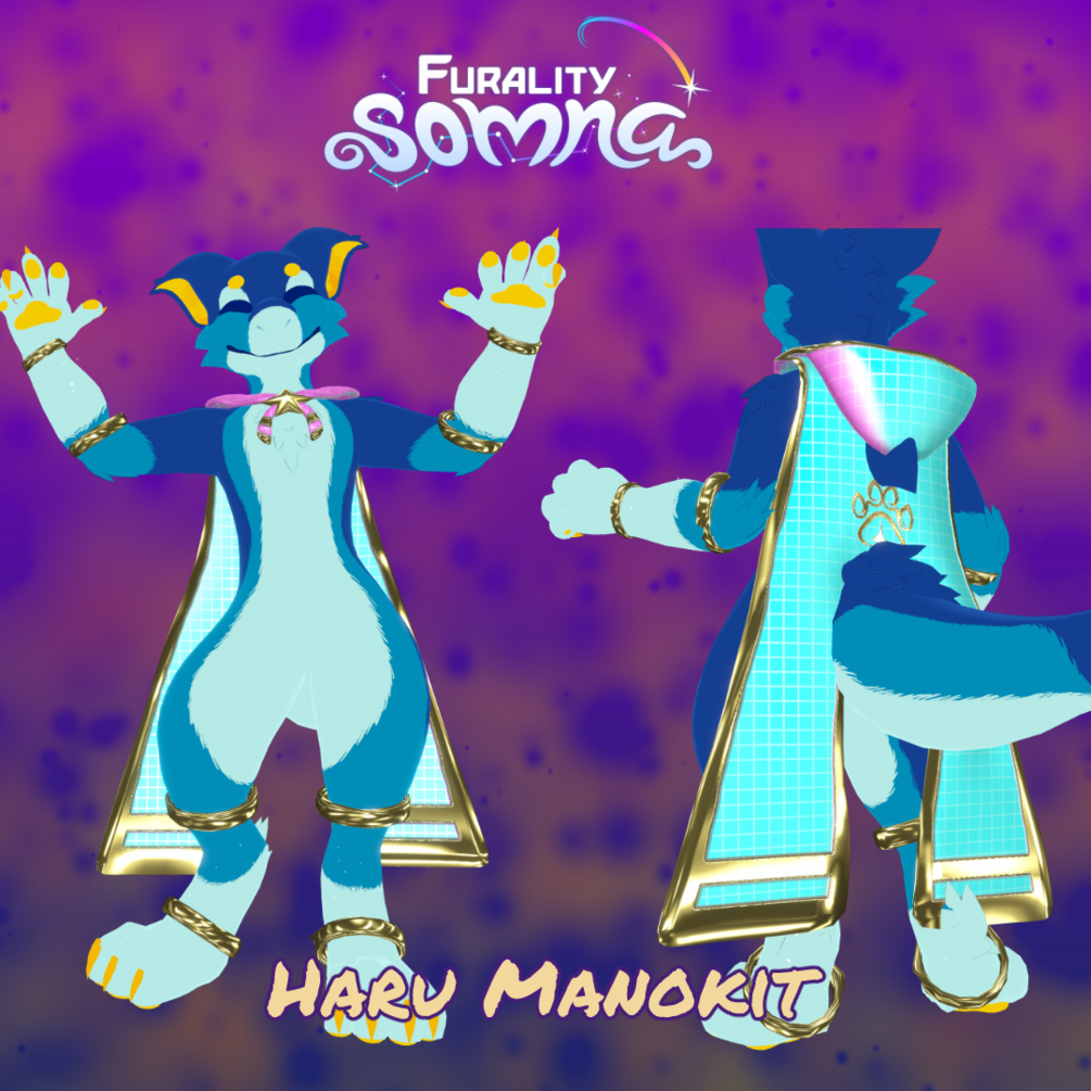 Introducing a Furality Somna themed Cloak and Cuffs set! Fully customized to work with the Somna shader, this set will make you look fashionable even if you have to get a few winks.