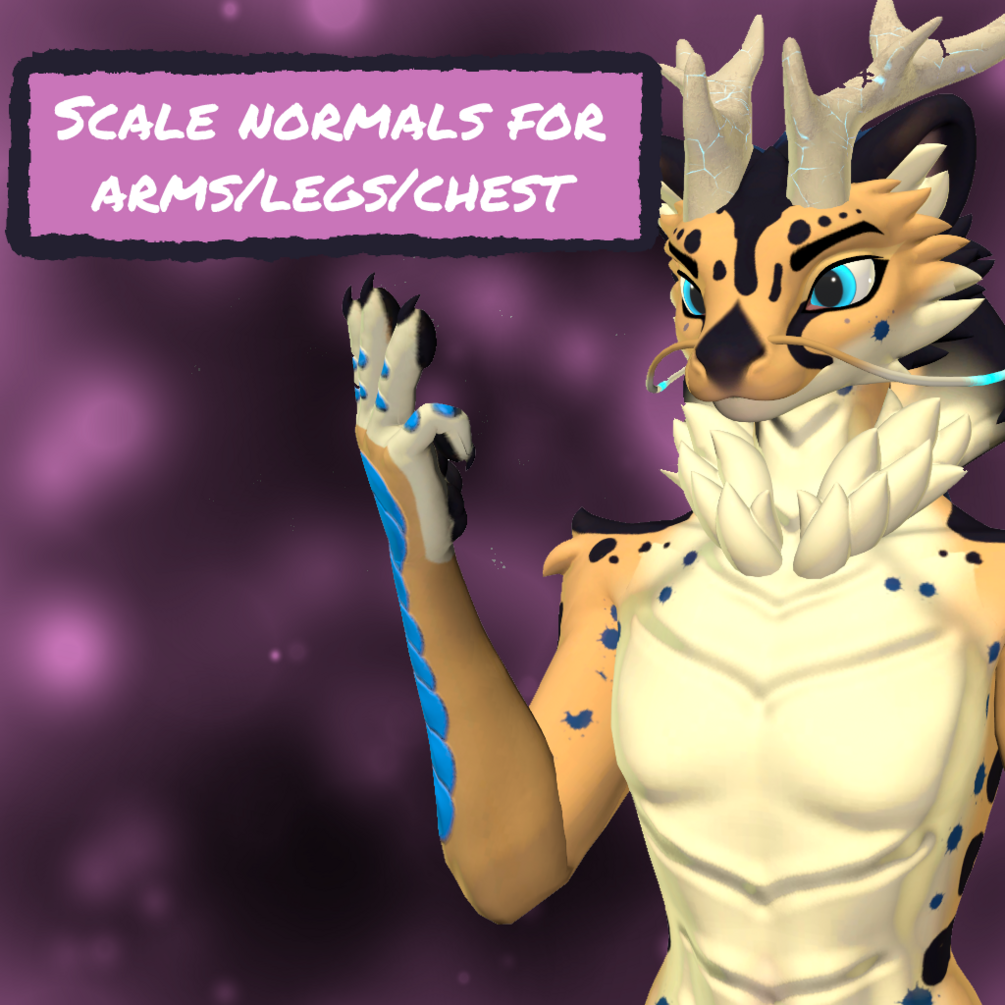 - Body pre-loaded with scale normals and decal, drop in your own body textures and recolor! No Substance required!